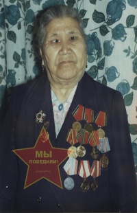 1921 г.р., Аргаяшский РВК, мл.с-т 611 бао, проживала после войны Аргаяшский р-н д.Дербишева.1941 г.,когда фашисты подходили к Волге и предгорьям Кавказа, она добровольно ушла в действующую армию, отслужила в стрелковом полку связисткой. Весной 1943 г. их часть отправили на дальний восток.