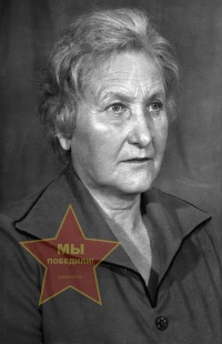 Годы жизни: 03.10.1928 - 13.06.2007. В возрасте 15 лет с 1943 по 1951 г.г. работала на химическом комбинате г. Кемерово в цехе по производству взрывчатых веществ. В июне 1945 года награждена медалью "За доблестный труд в Великой Отечественной войне 1941 - 1945 гг." "Ветеран труда" федерального значения, "Ветеран труда" регионального значения, "Ветеран "Магнитостроя".
