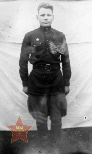 Старший Лейтенант Дружинин участвовал на фронтах Отечественной войны с июля 1941 года по март 1943 года. Принимал непосредственно участие в боях с немецко-фашистскими захватчиками. 20.04.1943 года в боях на Центральном фронте за село «Красное» Орловской области, участвуя в составе 870 стрелкового полка, 283 стрелковой дивизии, 3-й армии – в должности командира батареи, выполняя задание командования, при наступлении на восточную окраину села «Красное»,в разгаре боя был тяжело ранен в левую ногу в область коленного сустава и стопу правой ноги и эвакуирован в госпиталь. В госпитале на излечении находился около трёх месяцев. По излечении, как ограниченно годен 2-й степени (ограничение движений левой ноги в область коленного сустава) был уволен в запас и признан инвалидом 3 группы. С 1-ого ноября 1944 года товарищ Дружинин работает военруком Михайловской семилетней школы, к выполнению порученной работы относится добросовестно, дисциплинированный, исполнительный товарищ, среди учеников и преподавательского состава пользуется хорошим авторитетом. За активное участие в боях с немецкими захватчиками и как получивший 3 ранения (два из которых тяжелые) при выполнении боевого задания, - достоин представления к правительственной награде Ордену «Красная Звезда».