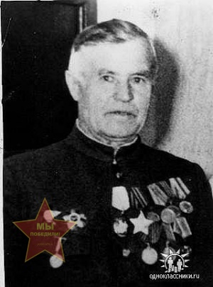 Награды: Медаль «За боевые заслуги» Орден Красной Звезды Орден Славы III степени Медаль за освобождение Варшавы Медаль за оборону Сталинграда Медаль за взятие Берлина Краткая история: В Отечественной Войне с марта 1942 г. воевал идя впереди тяжелой техники сооружая для нее переправы, мосты и понтоны С 26 по 27.09.43 (конец сентября) стоя по пояс в воде под минометным обстрелом и обстрелом авиации обеспечивал работу парома при ширине реки 800 м. 24.01.45 под огнем вражеской авиации призвал своим примером весь личный состав к работе по наводке моста. В результате проделанной работы было немедленно переправлено 482 единицы техники, орудий и других грузов. 03.08.44 Занял оборону по дамбе и первым поднял отделение в атаку против автоматчиков противника. 19.07.44 за полтора часа был наведен мост ранее разбитый вражеской авиацией