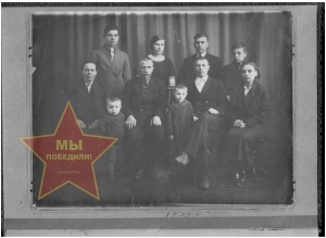 С первых дней Отечественной войны мои родные и близкие встали на защиту своей Родины. Мужественно сражались за победу. В семье моих бабушки и дедушки, Дарьи Васильевны и Терентия Дмитриевича Белоусовых (на фото, в первом ряду слева направо: Дарья Васильевна и Терентий Дмитриевич) было 5 детей, 4 сына и дочь. Мои бабушка и дедушка крестьяне деревни Картак 2, Октябрьского района, Челябинской области. Покинули деревню в 1929г. В 1932г. семья обосновалась в г. Челябинске. Дедушка с 1932г. и до начала Отечественной войны работал плотником в отделе капитального строительства Челябинского Абразивного завода. Терентий Дмитриевич родился 1891г., и по возрасту в действующую РККА не призывался. Он был мобилизован в так называемые трудовые батальоны, и до конца войны работал в г. Магнитогорске на металлургическом комбинате. В 1954 году дедушка вышел на пенсию. Умер он в 1972 году. Старший из сыновей Белоусов Андрей Терентьевич (на фото, во втором ряду слева направо: третий) родился в 1913г. Его трудовая деятельность началась в 1932г. Работал слесарем, а затем токарем на Челябинском Абразивном заводе. Андрей Терентьевич не был женат. Он считал, что должен помочь родителям вырастить младших братьев и сестру. Перед началом войны Андрей Терентьевич был призван на военную переподготовку в г.Чебаркуль. Домой дядя Андрей уже не вернулся, с началом войны был направлен на фронт. Андрей Терентьевич пропал без вести в декабре 1942г. Второй сын Дарьи Васильевны и Терентия Дмитриевича Белоусов Дмитрий Терентьевич (на фото, в первом ряду слева направо: пятый) родился в 1915г. До войны работал электриком. Женился, в 1935г. родилась дочь Юля, в 1937г. родился сын Герман (на фото в первом ряду). Перед началом войны был призван на военную переподготовку так же, как и старший брат. С началом войны принял участие в боевых действиях, был танкистом. Дмитрий Терентьевич в годы войны прошел сокращенное обучение в Ульяновском танковом училище, получил звание офицера, брал Берлин. Неоднократно был ранен. Мой дядя награжден орденом "Отечественной войны" 1 степени, медалью «За Взятие Берлина», медалью «За Победу над Германией в Великой Отечественной Войне 1941-1945гг". После войны продолжал трудовую деятельность. Трагически погиб в 1955 году. Третий сын моих бабушки и дедушки Белоусов Яков Терентьевич (на фото, во втором ряду слева направо: первый) родился 20 декабря 1920г., получил среднее образование в школе №50 г.Челябинска. Дядя очень хорошо рисовал. После окончания школы устроился на станцию Челябинск ЮУЖД учеником художника-оформителя, далее работал художником-оформителем в кинотеатре им. Пушкина. В 1940г. был призван для прохождения военной службы. Яков Терентьевич служил на границе с Польшей (г.Лида). В начале войны дядя попал в плен. Прошел все ужасы плена и концлагерей, домой вернулся только в 1948г. Работал Яков Терентьевич художником-оформителем в различных организациях г. Челябинска. Уже после войны Яков Терентьевич был награжден медалью "За Боевые Заслуги". Умер дядя в 1988 году. Младший из сыновей Белоусовых Константин Терентьевич (на фото, во втором ряду слева направо: четвертый) родился в 1923году, получил не полное среднее образование. С 1939 года работал электрообмотчиком на Челябинском Абразивном заводе, без отрыва от производства учился на курсах мотоциклистов. В марте 1942 года был призван в армию. Вое