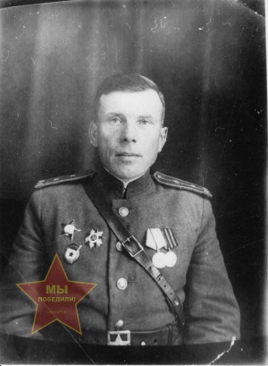 Мой дед, Решетников Виктор Александрович, родился 1906г. в городе Миассе Челябинской области, там же получил общее образование в школе при железной дороге. С 1920года ремонтный рабочий ст. Чебаркуль Ю.У.Ж.Д. Дед вспоминал: «Время было тяжёлое, везде разруха, возможности получить специальное образование не было. В свободное от работы время, вечерами и ночами, на деревянном ключе изучал азбуку Морзе, в этом ему помогали телеграфисты станции». После сдачи экзамена, с 1922 по 1928 работал телеграфистом на Ю.У.Ж.Д. 1928 призван в Красную Армию, служил в Челябинском Горвоенкомате, потом в военкомате города Свердловска. После окончания курсов Уральского Военного округа, в 1933 был направлен Военкомом в Шумиху. 1937-1939 военкомат города Челябинска, неоднократно избирался депутатом Челябинского городского Совета, был председателем военной секции при Гор.Совете. Участвовал в организации ОСОАВИОХИМА, был военным корреспондентом газет «Челябинский рабочий» и «Сталинская смена» и редактором газеты «Боевой призыв». На сессиях Челябинского горисполкома работа военной секции признавалась как самая лучшая, а её председатель был награждён гражданским костюмом. 1939-1942 военком города Карабаша, с первых дней войны перестраивал работу комиссариата на военный лад, мобилизация всех людских и материальных ресурсов, размещение госпиталей. Подаёт рапорты вышестоящему командованию об отправке его на фронт. В апреле 1942 направлен на работу военным комиссаром Каргопольского района, и только в августе 1942 переведён в посёлок Шершни гор. Челябинска, в формировавшуюся там 15-ю отдельную лыжную бригаду добровольцев-парашютистов. Лыжная бригада была полностью сформирована и материально обеспечена благодаря своим шефам - Управлению Ю.У.Ж.Д. Рабочие и служащие транспортного узла много сделали для бригады. В локомотивном и вагонном депо изготовили десантные ножи, волокуши для пулемётов, женщины сшили маскировочные халаты. После непродолжительной боевой подготовки, лыжная бригада эшелонами двинулась на Северозападный Фронт. Бригада вошла в состав 2-й Гвардейской Воздушно-десантной Проскуровской, ордена Суворова дивизии. Дивизия начала свой боевой путь под Москвой, участвовала в Курской битве. После освобождала от фашистов Украину, Польшу, Венгрию, Словакию и Чехию. Воспоминание деда: «Из всего боевого пути, у каждого солдата в памяти надолго остаётся главное. Вся моя жизнь ничем особенным не отличается от многих, других людей моего поколения, и подвига я не вижу, просто выполнял свой солдатский долг. Но несколько часов из моей жизни, как гравюра на металле. Это было так: 13 ноября 1943 года наш полк, в ходе наступательных боёв под Киевом, вырвался вперёд и оказался в трудном положении. Немцы перешли в контрнаступление, против полка были брошены части танковой дивизии «Мёртвая Голова» и части горно-егерской дивизии «Эдельвейс». Село Нова Буда, около города Малин, Житомирской области, было занято немцами. На улицах завязался неравный бой, пом.начштаба по разведке был убит, возглавляя рукопашные схватки. Командир полка полковник Кошмяк Г.Д. вызвал меня и приказал, любой ценой вынести и сохранить знамя полка. Ночью я незаметно пробрался через траншею в Командный Пункт. Снял знамя с древка и спрятал на груди под шинелью. Стал пробираться через вражеское кольцо. Когда добрался до 