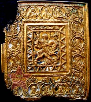 Ожидаемые результаты: 1. Содействие формированию у детей и молодежи высокого патриотического сознания, верности Отечеству. 2. Воспитание уважения к истории России. 3. Развитие таких социально-значимых ценностей как гражданственность и патриотизм Часть I. Спасённая жизнь Мы расскажем историю одной семейной реликвии, которая и побудила нас заинтересоваться традицией – защищать воинов идущих на бой с помощью оберегов. Речь пойдёт о меднолитой иконе с изображением Георгия Победоносца, хранящейся в семье учителя нашей школы Коликовой Елены Георгиевны. Мы не знаем, к какому времени относится эта икона, но мы узнали удивительную историю, связанную с ней. Вот что рассказала Елена Георгиевна: «Эта реликвия передаётся в нашей семье из поколения в поколение. К моей дочери – Кате, она перешла от прабабушки – Коликовой Анастасии Антоновны, а ей, в свою очередь от отца – Коликова Антона Ивановича, проживавшего в селе Преображенка Челябинской области. Уходя на фронт в 1943 году, Антон Иванович получил эту икону от своей матери Марии. Он участвовал во многих сражениях Великой Отечественной войны, был ранен, но не погиб! В одном бою Икона буквально спасла ему жизнь: пуля попала в икону, её край откололся и оплавился…Эта реликвия прошла всю войну с Антоном Ивановичем и сберегла его от гибели» А жена его Мария, растила детей, работала в тылу, и свято верила «Он вернётся!» Великий академик Д.С. Лихачев сказал: «Жизненная мудрость заключена в благодарной памяти потомков, а иногда и целого народа. Любовь к родному краю, к родной культуре, к родной речи начинается с малого – с любви к своей семье, к своему дому, к семейным традициям. Утрата любой традиции невосстановима, такие традиции индивидуальны, связаны с определенной эпохой, конкретными историческими событиями». Часть II. «Древняя традиция» На иконе Святой Георгий изображается сидящим на белом коне и поражающим копьем змия. Это изображение основано на придании и относится к посмертным чудесам святого великомученика Георгия. Великомученик Георгий особенно почитается верующими на Руси. По преданию Святой Георгий родился в конце II - начале III века в малоазиатской провинции Каппадокия Римской империи, и рос в знатной христианской семье. Благодаря воинским умениям стал правителем Каппадокии, затем поступил на военную службу и прославился своей храбростью, став римским военачальником. Его отец мученически погиб за христианскую веру. Находясь на службе в римском войске, святой Георгий был замечен императором Диоклетианом (284-305) и взят им на высокую должность в свою стражу. Когда император усилил гонения на христиан, святой Георгий отпустил на волю своих рабов, роздал нищим свое имущество и выступил в Сенате с обличением замыслов императора. Диоклетиан приказал подвергнуть его всевозможным пыткам. Но наконечники копий гнулись, когда касались тела святого, зелья на него не действовали, истерзанное тело становилось исцеленным. Уговоры императора также не заставили великомученика отказаться от Христа. Дело дошло да того, что император предложил святому Георгию стать соправителем. Святой выразил притворное согласие. Когда его привели к идолам, чтобы принести жертву богам, святой Георгий сотворил крестное знамение и разговаривал с идолами, как с живыми, а бесы, сидящие в идолах, отвечали ему. Действ